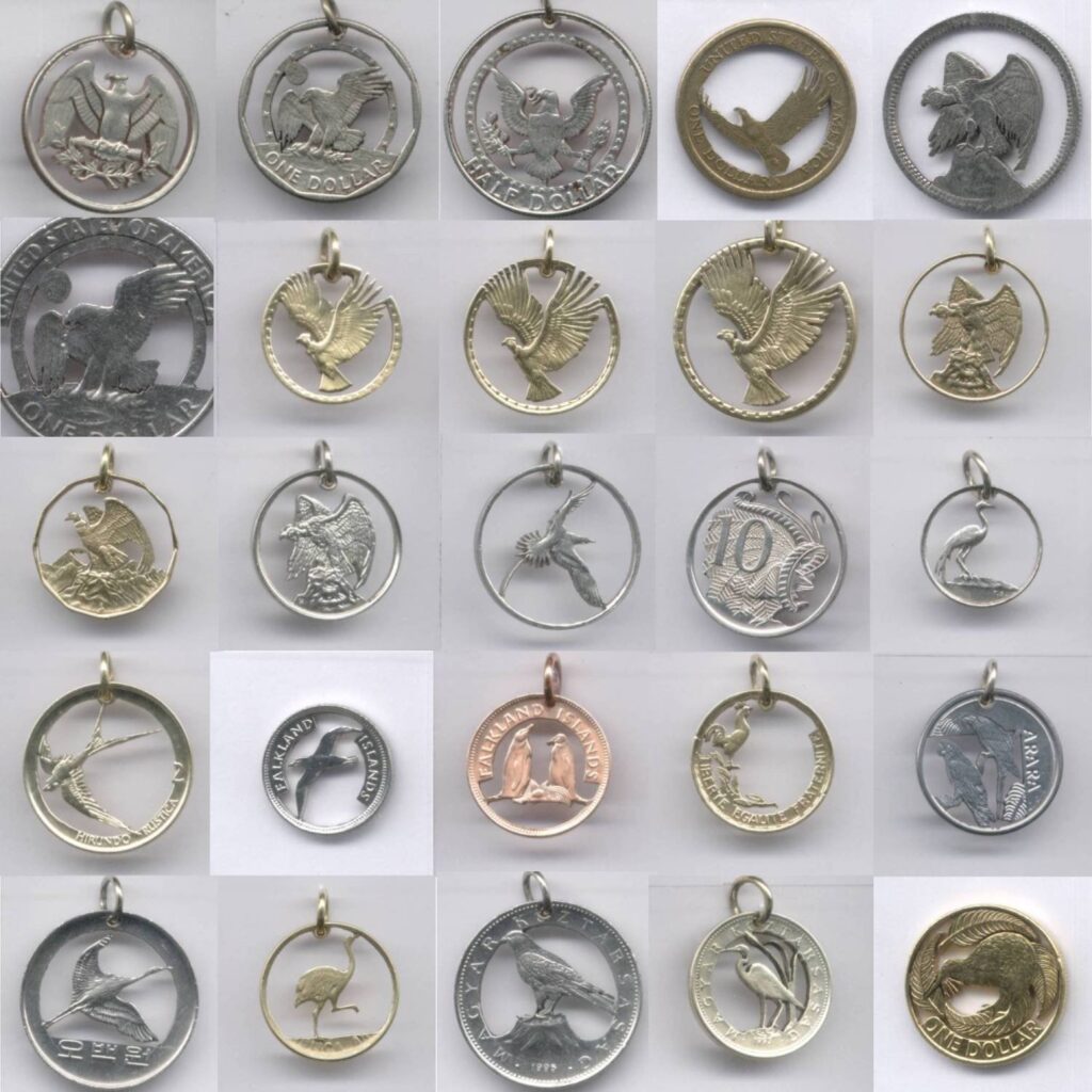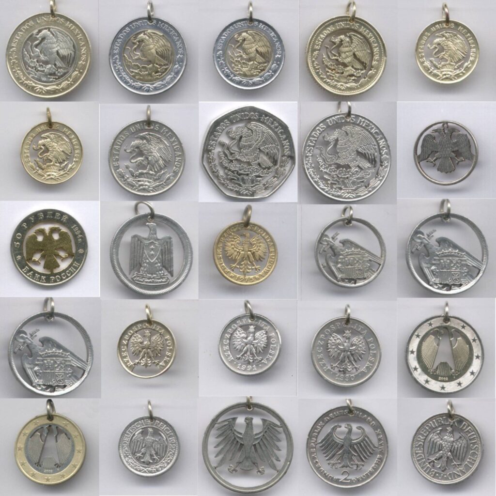 La colección completa es de 680 imágenes de colgantes hechos con monedas caladas a mano, que poco a poco editaré en este espacio.